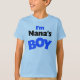 Ich bin Nanas Jungen-T - Shirts, lange Hülsen-T-Shirts, Bodysuits einschließlich Bio Bodysuits, und Fußballbodysuits, Hüte, Spielanzug, dunkle T - Shirts, Raglan T - Shirts und anderes Kleid mit einem hellen blauen und schwarzen Textentwurf, der mich liest, sind Nanas Junge!