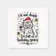 Ein lustiges und fröhliches Weihnachtsdesign zeigt eine Katze, die eine Weihnachtsmannmütze trägt und ein Glas Rotwein hält. Die festliche Szene ist mit Sternen und Weihnachtsglocken geschmückt, begleitet von handgeschriebenem Text, der lautet: "Ich bin nicht betrunken, ich bin voller Urlaubsgeist." Dieses reizvolle Design ist auf einer Vielzahl von Produkten erhältlich, sodass es ein perfektes Geschenk für Weinliebhaber ist.