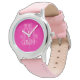 Kinderuhr aus Edelstahl mit rosa Lederarmband