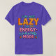 Dieses humorvolle und stilvolle T - Shirt-Design enthält den spielerischen Slogan "I’m Not Lazy, I’m On Energy Rett Mode" in fett-retro-inspiriert Typografie. Die lebhafte Farbpalette umfasst aquamarin, orange und rosa, mit moderner Touch und 3D-Schatteneffekt. Ideal für lässige Kleidung und eine tolle Konversations-Starter für diejenigen, die verrückte und witzige Mode Liebe. Ideal zum Gaben oder Hinzufügen zu Ihrer persönlichen Sammlung.