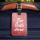 Kommen Sie und gehen Sie in Art mit diesem lustiges Skript schriftlichen Gepäckanhänger. Er kennzeichnet die Wörter, ", das ich Outta hier" in einem einzigartigen weißen Skriptart-Schriftart bin. Hinter diesem ist ein fabelhafter RosengoldGlitter angeredeter Druckhintergrund. Unter den Text ist eine optionale Stelle für Ihre oder den Namen oder die Initialen Ihrer Geschenkempfängers.