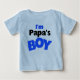 Ich bin Papas junge T - Shirt, langärmelige T-Shirts, Körperanzüge einschließlich Bio Körperanzüge, und Fußballkarosseriebüge, Hüte, Rüschen, dunkle T - Shirt, raglan-T - Shirt und andere Kleidung mit einem hellblauen und schwarzen Textdesign, das mir sagt, ich bin Papas Junge!