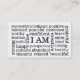 Diese mutige Schwarzweiss-Visitenkarte kennzeichnet ein großes ICH SIND in der Mitte, umgeben durch Wörter, die positive Persönlichkeitsmerkmale für positive Gedanken wirklich emporheben darstellen. Die Rückseite hat Mehrfachverbindungsstelle kundengebundene Linien des Textes, wenn Sie Ihre Mitteilung verbreiten möchten, die Ihre Autonomie oder in Verbindung stehendes Geschäft oder Dienstleistungen annonciert. Oder wechselweise können Sie die Textfelder auf der Rückseite löschen und diese verwenden, während die motivierend Mitteilungsblätter, zum der Grund zu sein jemand lächelt. Fangen Sie Ihre Morgen mit diesen positiven Gedanken an und ich bin die Aussagen, zum eines gesunden Selbstbildes und des Bewusstseins Ihrer Stärken und Fähigkeiten zu schaffen. Was Sie zu selbst heraus loud sagen oder, zu selbst in Ihrem Verstand, während ICH BIN, ist Satz stärker als, was andere zu Ihnen sagen. Lesen Sie diese, bis Sie ihm in Ihrem Herzen glauben. Ich bin erfolgreich. Ich bin reichlich. Ich bin glücklich. Ich bin schön.