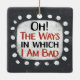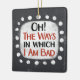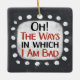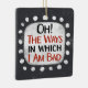 Ein lustiges typografisches Design, das sagt "Oh! die Art und Weise, wie ich schlecht bin". Es ist schwarz und rot auf einem weißen Rechteck mit funky, spielerisch weißen Punkten, die ihn umgeben, alles auf einem grauen Hintergrund.