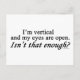 Ich bin vertikal und meine Augen sind offen. Ist das nicht genug? Sieht es so aus, als seien die Leute zu anspruchsvoll, wenn man nicht nur will, wach zu sein, sondern will man, tatsächlich etwas zu tun? Sehen Sie alle unsere musikalischen Entwürfe auf Tassen, Tasse, T-Shirts, Sweatshirts, Hüte, und andere Geschenke und Kleidung.