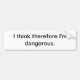 Autoaufkleber mit der Aussage, ", das ich denke, dass deshalb ich bin gefährlich."