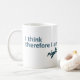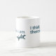Tasse, die Entwurf mit dem Text kennzeichnet, ", das ich denke, dass deshalb ich Recht habe".