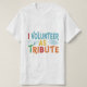 Das Design des T - Shirt erklärt mutig "I Volunteer as Tribute" in einem mehrfarbigen Schema. Die unterschiedlichen Farben fügen der Botschaft ein dynamisches Element hinzu, das Ihren Mut und Ihre Bereitschaft, sich herauszustellen, zeigt.