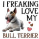 Dieser Basic I Freaking Liebe My Bull Terrier T - Shirt bietet eine entspannte Passform für die weibliche Form. Aus 100% Baumwolle ist dieses T-Shirt beides: strapazierfähig und angenehm weich - eine gute Kombination, wenn Du nach einem lässigen Basisstück suchst.