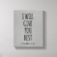 Ich gebe Ihnen Erholung Bible Verse Scripture Canvas Prints mit rustikal grauem Hintergrund Not leidend. Einfaches Design mit kraftvollem Komfort der Bibel.