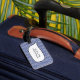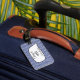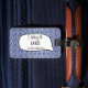 Personalisierter Gepäckumbau für ihn. Mit geometrischem Muster im Blau.