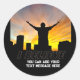 Eine stehende Person, die den Sonnenuntergang über der Stadt betrachtet und an ihren Herrn, Träume und Ziele glaubt.