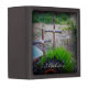 3 Kreuze springen mit Schnur-, fotografierter und eingelassenerfront eines leeren "Grabs" mit dem grünen Gras, das in der Nähe wächst. Inspiriert durch meine Gartenarbeit und meine Liebe des Gottes. "ich glaube, dass" Andenken und Gedächtniskasten ein Geschenk des Special für immer für die des Glaubens sind.