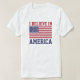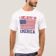 " Ich glaube an Amerika" der T - Shirtentwurf, der die amerikanische Flagge und den Text in den Farben "alter Ruhm-rotes" und "altes Ruhm-Blau" - die offiziellen Farben kennzeichnet, die in der USA-Flagge verwendet werden. Alle Textelemente sind kundengerechte Aufseite.