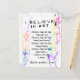 Die ich glaube an Kunst Manifest, IBelieveInArt.com Werbe-Postkarte von Victoria Lynn Hall. Für jeden, der an Kunst glaubt.