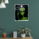 Eine komische grüne Alien verkündet: "Ich glaube, ich habe es Got!"