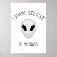 Dieses Plakat hat ein lustiges Textkunstdesign mit einem Alien-Gesicht. Die Worte lauten: "Ich glaube nicht an Menschen". Es ist ein großartiges geeky Design, geeignet für alle.