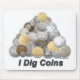 Eine Pyramide der gegrabenen alten Münzen angezeigt mit den Wörtern: Ich grabe Münzen