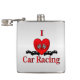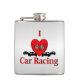 Großartiges Renndesign für den Rennfahrer. Ein großes Herz mit Schachbrett-Fahnen durchquert in der Mitte. Rennwagen auf beiden Seiten machen dies zu einem einzigartigen "I Heart Design".