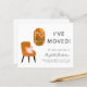 Eine preisgünstige Boho-schicke neue Zuhause und Adressenwechsel-Ankündigung mit abstrakten Illustrationen eines Terracotta-Stuhls mit einem rosa Blumenkissen neben einem Fenster mit Blick auf eine Terrakotta-Landschaft aus rosa Blume und einer Sonne. Auf der Vorderseite personalisieren Sie mit Ihrem Namen, dem Text "I've Moved" und Ihrer neuen Adresse. Auf der Rückseite können Sie Ihre Ankündigung detaillierter personalisieren und auf Wunsch eine Telefonnummer und E-Mail angeben.