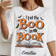 Graphical Halloween Custom Shirt Design Features "I Put The Boo in Book" Text in schwarz und orange Typografie. Macht das beste personalisierte Halloween-Geschenk für Schriftsteller! Perfekt, um sie sich ganz besonders zu fühlen, ihr Vertrauen zu stärken und ein einzigartiges und bequemes Geschenk zu bekommen!