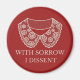 Der Protest gegen den Umsturz von Roe gegen Wade, einem runden Magneten mit einem RBG-artigen Spitzenkragen und einer Paraphrase der abweichenden Meinung der drei Richter.