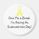 Endometriose ist eine unglaublich schmerzhafte und missverstandene Störung. Manchmal, die leiden müssen, wissen alle gelassen: "Heute ist ein Endometriosetag:" Also, geben Sie mir eine Pause, verwöhnen mich, umarmen Sie mich, reiben Sie mir den Rücken und geben Sie mir Leckereien! Leide nicht im Schweigen! Dieser Magnet ist eine großartige Möglichkeit, das Bewusstsein zu schärfen, um den Menschen lassen, dass sie eine Pause brauchen, und um die Konversation über das Endo zu stimulieren.