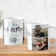Erstellen Sie Ihre eigene personalisierte Vatertag-Tasse mit Ihren 4 benutzerdefinierten Fotos. Das bezaubernde Zitat lautet: "Ich habe einen Helden und nenne ihn Vater".