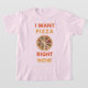 Slogan: "Ich habe gerade Pizza gewollt!" Es ist komisch, dass Leute eine Pizza auf dem Tisch gewollt haben und sie nicht da ist, also beschweren sie sich über sie. Ein Muss für Pizzafreunde.