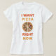 Slogan: "Ich habe gerade Pizza gewollt!" Es ist komisch, dass Leute eine Pizza auf dem Tisch gewollt haben und sie nicht da ist, also beschweren sie sich über sie. Ein Muss für Pizzafreunde.