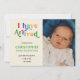 Ich bin da! Vergnügen Sie sich in farbenfrohen Briefen, in denen Sie die Geburt Ihres neuen Babys ankündigen und Ihr Lieblingsstipendium Ihres neuen Fotos vorstellen! Passen Sie dieses Design mit Ihrem Foto, dem Vor-, Mittel- und Nachnamen, Geburtsdatum, Uhrzeit, Gewicht und Länge an.