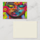 Mit dieser eleganten Notenkarte, die eine abstrakte Darstellung einer afroamerikanischen Frau in einem lebendigen Pop darstellt, lassen Sie den Tag eines Menschen verlängern. Die kühnen Farbtöne und die feinen Blumenmuster verleihen Ihren Kernbotschaften eine Touch moderner Eleganz. Diese Karte ist perfekt für jeden Anlass, um Ihre Gedanken zu äußern und einen bleibenden Eindruck zu hinterlassen.