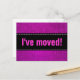 Ich habe Postkarten verschoben | Schwarz und Imitat rosa Glitzer Hintergrundbild. Benutzerdefinierter Bewegungstext; Wir sind umgezogen! Fügen Sie Ihre neue Adresse auf der Rückseite ein. Moderne neue Hauskarten für Zuhause und Business. Günstige Girly Card Design Idee.