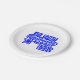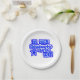 Ein weißer, 18 cm runder Papier-Teller, = optional, mit einer Zeichnung/Gestaltung, in navyblau, mit einem hellblauen Streifen, durch Buchstaben, und Zahlen, und einem Stern, = ICH HABS geschafft!, Absolvent 2026, =(Zeichnung/Gestaltung von P.J.M.)