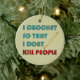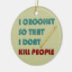 Eine Zunge im Backenslogan, ", das ich häkele, damit ich nicht Leute" mit einem Cartoonhäkelarbeithaken töte.