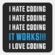 Ich hasse Coding Funny Gift für Programmierer Quadratischer Aufkleber