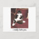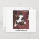 Simon, die schlechte Verhaltenskatze sagt: "Mama sagt, ich muss mein eigenes Gewicht ziehen. Deshalb bin ich auf dieser dummen Karte."