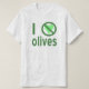 Ich hasse Oliven. Design, 9n T - Shirt eines Mannes, verwendet grüne Buchstaben, ein grünes Herz und das internationale "NO" Zeichen, um zu lesen: "Ich hasse Oliven". Gönnen Sie denen, die sie nicht "herumreißen", sie wirklich nicht mögen, aber ein Gefühl von Spaß haben, Liebe zu lachen und ihren lustigen Knochen kitzeln zu lassen.