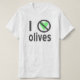 Ich hasse Oliven. Design verwendet schwarze Buchstaben, ein grünes Herz und das internationale "NO" Zeichen, um zu lesen: "Ich hasse Oliven". Für diejenigen, die nicht "Herz" sie, wirklich nicht wie sie, sondern haben ein Gefühl von Spaß (Spaß), Liebe zu lachen und lassen ihre lustigen Knochen gekitzelt.