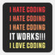 Ich hasse und Liebe Programmier-Geschenk Quadratischer Aufkleber
