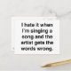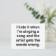 Ich hasste es, wenn ich ein Lied singe und der Künstler die Worte falsch macht