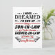 Ich hätte nie geträumt, ein Schwiegersohn eines Schwiegervaters zu sein, aber hier lebe ich den Traum