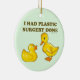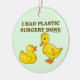 Die gelbe Gummiherde sagt: "Ich hatte Plastik-Operation Fertige Enten" zu einem Entlein. Das niedliche Design der Babyente.