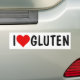 Ein lustiges Gag-Geschenk für Menschen, die es satt haben, glutenfrei zu hören, das ein weißer Autoaufkleber mit "I HEART GLUTEN" darauf geschrieben ist.