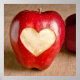Ein Herz in die Haut eines roten, köstlichen Apfels geschnitten