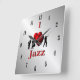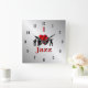 Ich höre Jazzmusik Silver w Black Numbers Quadratische Wanduhr