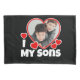 Ich Liebe meine Söhne mit einem Foto nach Herzenslust. Das Hochladen des Foto-Images wird es automatisch zu einem Herz formen. Für diejenigen, die mehr als einen Sohn hat. Ideal für Eltern, Väter, Mütter, für ihre Jungen. Zu seinem Geburtstag, Jahrestag, Weihnachten, Valentinstag und vielem mehr. Rote Herzen Design, weißer Schriftart/Text.