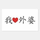 Dieses Design lautet "I heart Oma" geschrieben Chinesisch mit einem roten Herz, das an Seite schwarzen traditionellen chinesischen Schriftzeichen auffällt. Geeignet für Mütter- und Familienfeiern Familienfeiern, Krawatte mit mehr chinesischen Ansammlungen der Familie T - Shirts und Babyprodukte aus Mozartini.