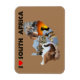 Ich liebe Südafrika! Es ist ein wunderschönes Land voller lebendiger Kultur, atemberaubender Landschaften und einer einzigartigen Mischung von Menschen. Von den majestätischen Sanddünen der Kalahari bis hin zu den atemberaubenden Drakensbergen strahlt Südafrika mit natürlicher Schönheit aus. Es ist auch Zuhause zu vielen herrlichen Nationalparks, atemberaubende Tierwelt und eine Fülle von Aktivitäten im Freien. Vom Surfen in Durban bis zum Spielen im Krüger Nationalpark bietet Südafrika für jeden etwas. Dieses Design wird von der südafrikanischen Landkarte inspiriert und enthält Fotos von Löwen, Aloes, Giraffen, Zebras und Elefanten, die alle die Kontur bilden.