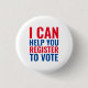 Ich kann Ihnen helfen, sich zu registrieren, um rot-weiß-blau patriotischen politischen Wahlen Freiwilligen-Taste wählen. Roter und blauer Text auf weißem Hintergrund.